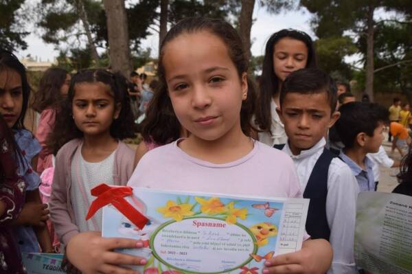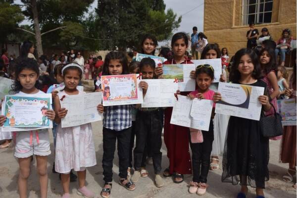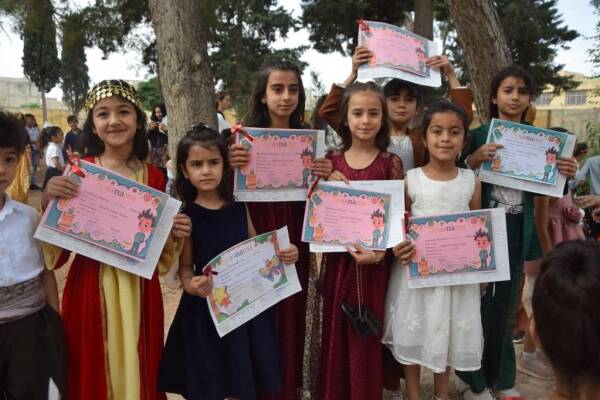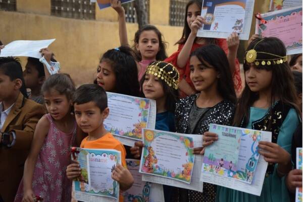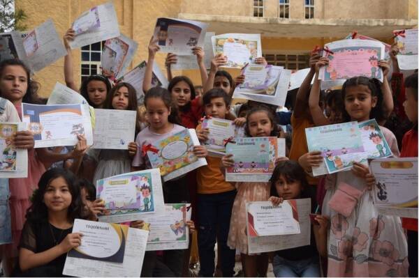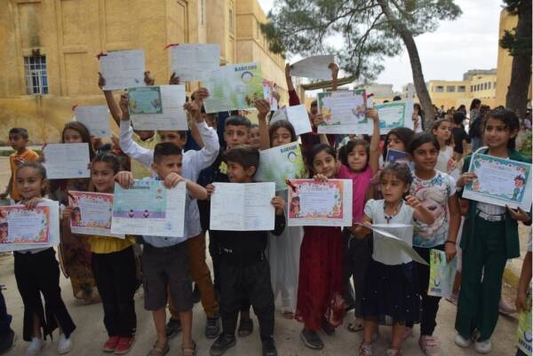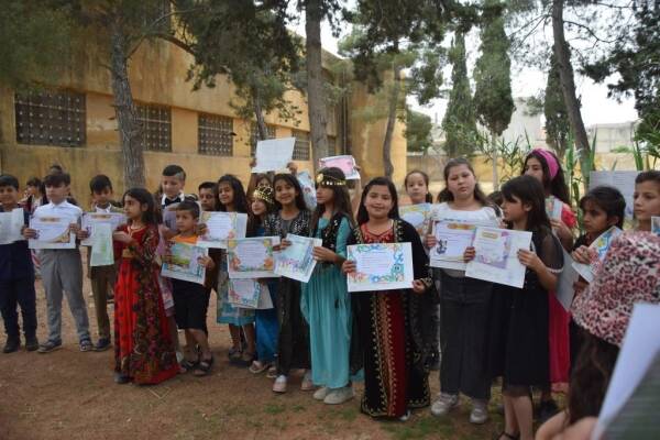 بعد عام كامل من الدراسة، تم اليوم توزيع الجلاء المدرسي على طلاب المرحلة الابتدائية في مدارس إقليم الفرات في شمال وشرق سوريا.