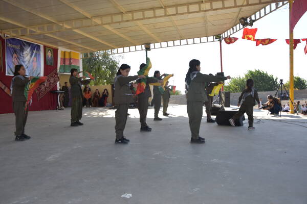 وتم توزيع الجوائز الأولى والثانية والثالثة لبطولة الشهيد أبو زيد ديرهني لكرة الطائرة. واستمر المهرجان بحماس كبير وبأغاني الفنانة سوسن وترديد شعار "المرأة، حياة، حرة". ثم صعدت فرقة الشهيدة هلبست كوجرين، لأمهات المخيم على المسرح وأضفو روحاً للمهرجان عبر الرقصات الشعبية التي قدموها.