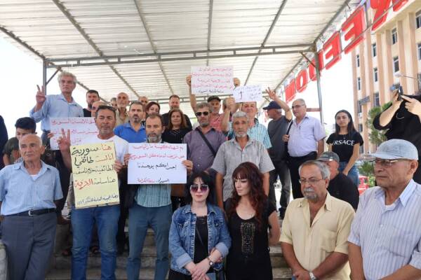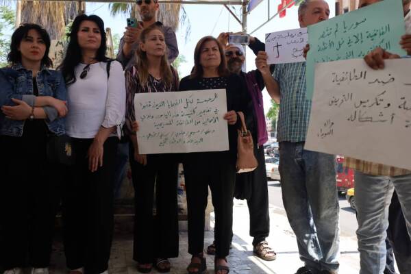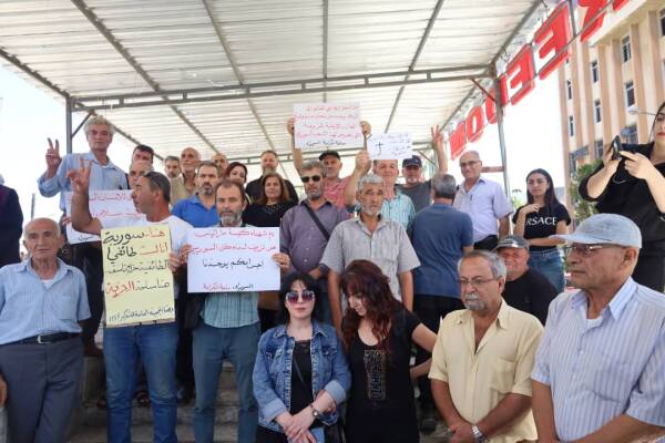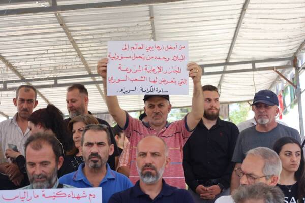 ورفع المشاركون في الوقفة شعار "الطائفية حزام ناسف.. نقف ضد التحريض"، مؤكدين من خلاله موقفهم الشعبي الثابت الرافض لكل أشكال العنف، والتشديد على وحدة النسيج السوري في وجه خطاب الكراهية ومشاريع الفتنة والتقسيم.