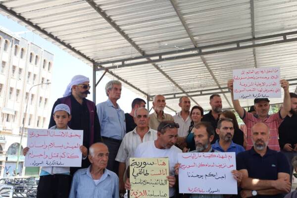 "ضد التحريض والطائفية".. وقفة حداد في ساحة الكرامة بالسويداء