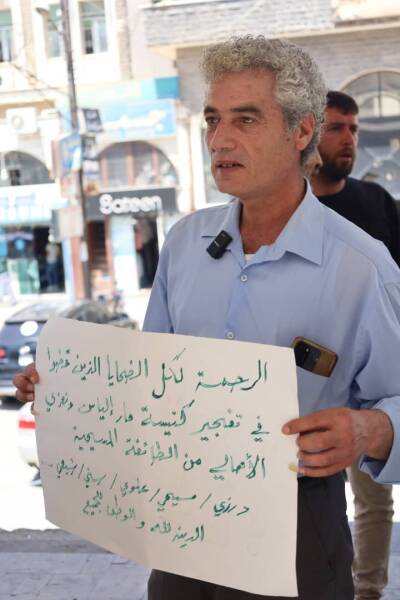 وعبّر عدد من المشاركين والمشاركات في حديثهم لوسائل الإعلام عن حزنهم العميق لما وصفوه بـ"العمل الإرهابي الجبان"، مطالبين بالتصدي لأي محاولة تهدف إلى زعزعة السلم الأهلي أو بث الفتنة بين مكونات المجتمع السوري.