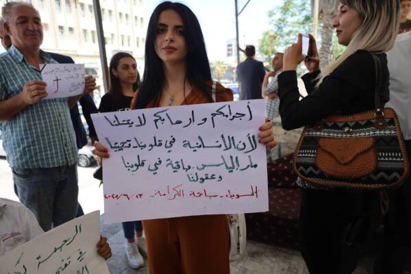 نظم عشرات المواطنين والمواطنات، صباح اليوم، وقفة حداد في ساحة الكرامة وسط مدينة السويداء، استنكاراً للتفجير الانتحاري الذي استهدف كنيسة مار إلياس في منطقة دويلعة بدمشق.