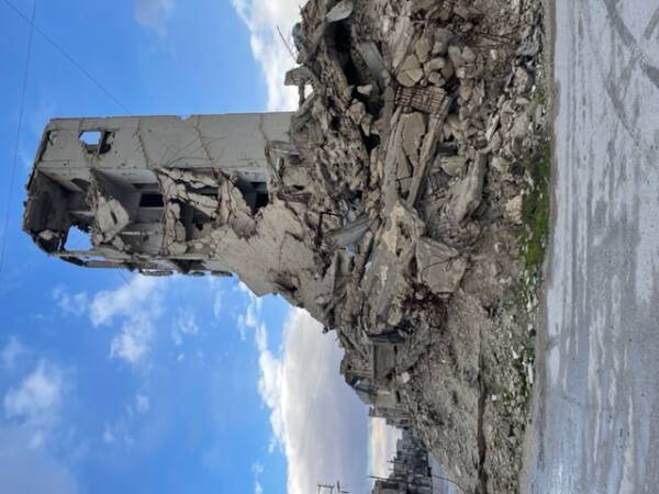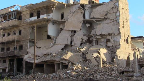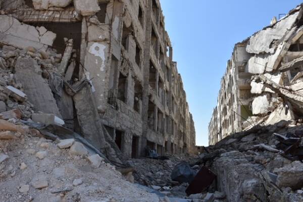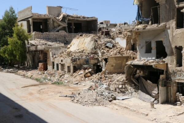 أينما يتوجه المرء داخل المدن السورية، سيرى الدمار بسبب الحرب بين النظام السوري والعصابات الإرهابية الممولة من قبل الدول الإقليمية والقوى الأخرى، حيث الطرق المدمرة، المنازل والاحياء المتهدمة، أنقاض ضخمة في الأحياء والشوارع، خنادق على مبان مهدمة، متاريس والعديد من مخلفات الحرب مثلها، كلها آثار للمعارك العنيف التي شهدتها سوريا.