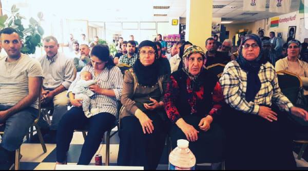 الناطق الرسمي باسم الديوان والرئيس المشترك امركز المجتمع الديمقراطي الكردي التابع لضاحية افري, جميلة رنكليجاي تحدثت في بداية الاجتماع وباسم المؤتمر الوطني الكردستاني قائلةً "لسنا اخوة اردوغان, اردوغان سفاح, قام بالاستيطان في عفرين ووضع يده على املاك الشعب وتهجير شعبها وفي النهاية يقول (لاتوجد أي مشكلة), بوجودنا هذا وارادتنا يجب ان نكون حريصين في انتخابات 24 حزيران وان نتخذ الحيطة والحذر من اردوغان ,يجب أن نقف جنبا الى جنب مع حزب الشعوب الديمقراطي ونقوم بالقضاء على هذا النظام".