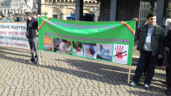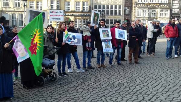 نظم الكردستانيون وقفة احتجاجية أمام برلمان ولاية بريمن الألمانية للتنديد بعدوان الاحتلال التركي على عفرين، حيث دعا الكردستانيون وأصدقائهم من مناصري قضية الشعب الكردي كل من الاتحاد الأوروبي والأمم المتحدة وحلف شمال الأطلسي إلى احترام قوانينهم وتطبيقها. كما ندد المتظاهرون بتصريح مسؤولي الأمم المتحدة الذين قالوا إنه "يتم منع مدنيي عفرين من الخروج"، حيث قال المشاركون في الوقفة: "فلتقم الأمم المتحدة بدايةً بتطبيق قرار الهدنة ووقف إطلاق النار، ليس من مهام الأمم المتحدة إفراغ عفرين من سكانها. بدايةً على الأمم المتحدة إنهاء العدوان التركي على عفرين والالتزام بالشرعة الدولية". وفي نهاية الوقفة تم الدعوة إلى مشاركة فاعلة في فعاليات يوم الثامن من آذار، اليوم العالمي للمرأة الكادحة.