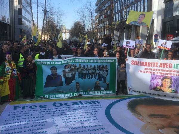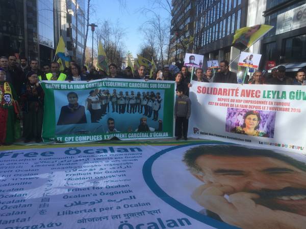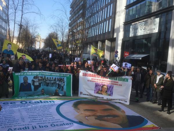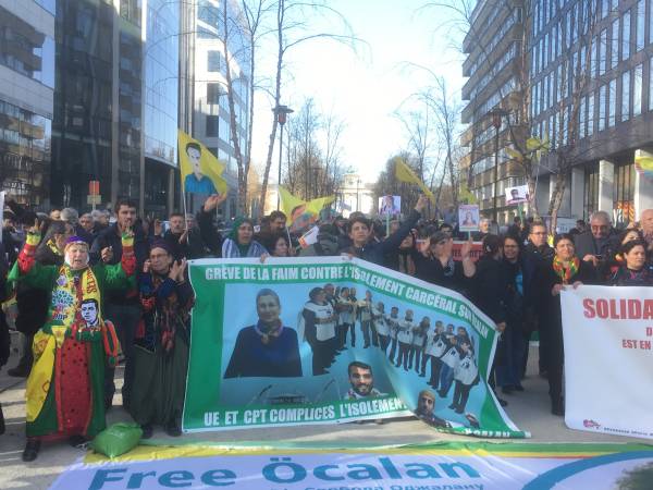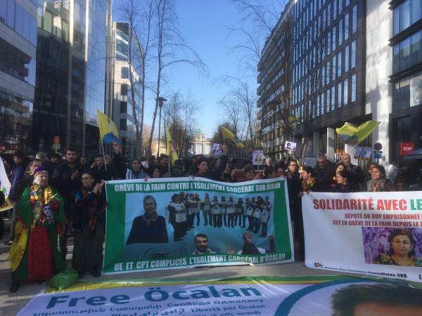 وتجمّع المتظاهرون, القادمون من عدّة مدن أوروبيّة, منذ الساعات الأولى لصباح اليوم الأربعاء (27 شباط) في ساحة "كارى نورد" ببروكسل, وقاموا بالمسير في شوارع المدينة الرئيسيّة, مردّدين هتافات مستنكرة بالعزلة على القائد أوجلان ومتضامنة مع المئات من الناشطين المضربين عن الطعام.