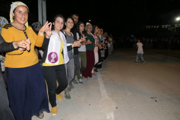 وبعد الانتهاء من إلقاء الكلمات والخطب استمرت الجماهير المشاركة في الاحتفالية في عقد حلقات الرقص الفلكلوري وترديد الأغاني والشعارات الداعمة لحملة حزب الشعوب الديمقراطيHDP.