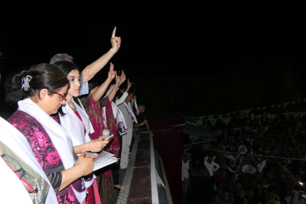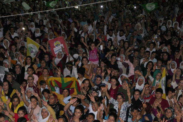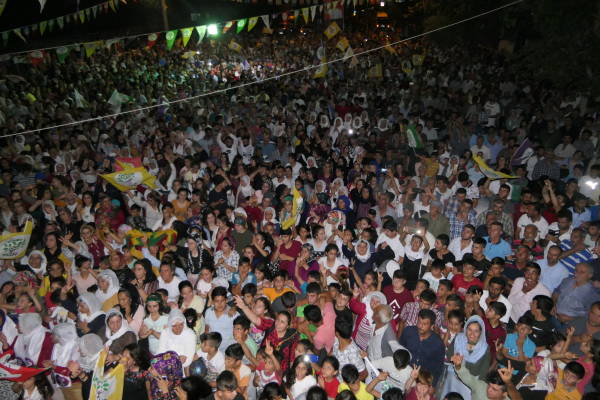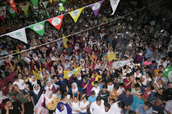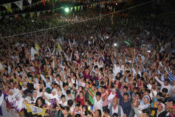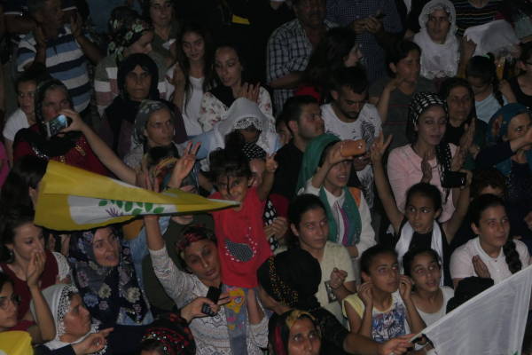 وحضر الاحتفالية كل من الرئيسة العامة المشتركة للحزب بروين بولدان، مرشح الحزب عن "هاتاي" باريش أتاي ومرشحة الحزب عن "اضنة" تولاي حاتم اوغلولري. وخلال الاحتفالية تم استقبال بولدان ومرشحو حزب الشعوب الديمقراطي بحماسة كبيرة وسط زغاريد وتصفيق حار من قبل الحاضرين.