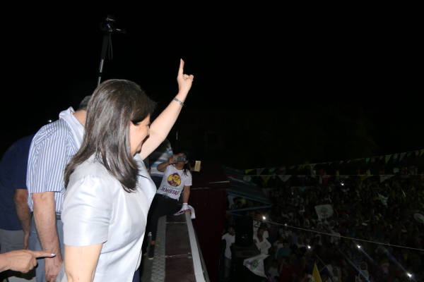 وأكّدت مرشحة حزب الشعوب الديمقراطي عن أضنة، تولاي حاتم اوغلولاري في كلمتها أنّ حزبهم سيتمكن في انتخابات 24 حزيران من تجاوز العتبة الانتخابية، مضيفةً بالقول: "في ذلك اليوم سنتمكن الخلاص من النظام الذي يهدد مرشح حزبنا صلاح الدين دميرتاش بالإعدام. سنتمكن من التخلص من تلك الطغمة المهيمنة على الحكم والتي تفرض العزلة المشددة على أوجلان، وارتكبت المجازر في جزير وسور، دمرت المنازل وأحرقت الناس أحياء هناك. كما يقول السيد دميرتاش هذه الانتخابات هي الطريق إلى القضاء على الوحشية. فلتكن ثقتكم بأنفسكم كبيرة وأملكم أكبر، مؤكد النصر سيكون من حليفنا".