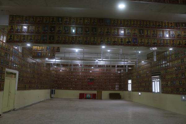 وعند الدخول الى المؤسسة نجد غرفة واسعة جدا مليئة بصور شهداء كوباني معلقة على الجدران. ونجد ذوي الشهداء يمعنون النظر في صور ابنائهم الشهداء.