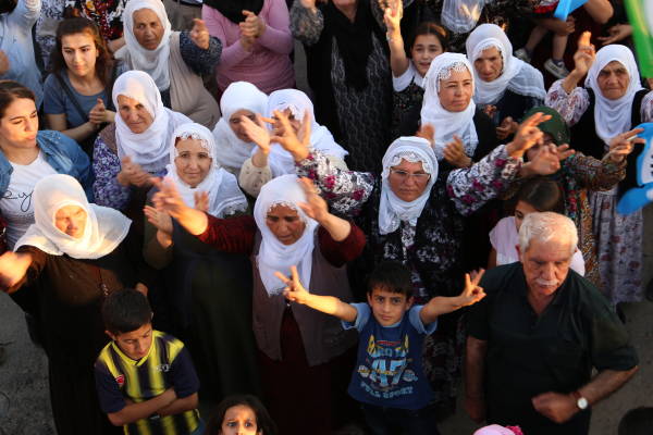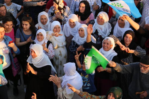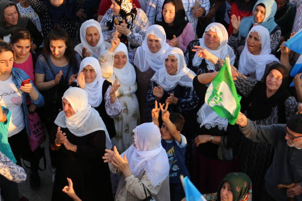 من جهتهم, هتف الآلاف من أهالي مدينة نصيبين, ممن شاركوا في استقبال بولدان, باسم حزب الشعوب الديمقراطي وردّدوا شعارات تقول "نصيبين فخوّرة بكم", مشدّدين على إصرارهم الفوز في الانتخابات المقبلة لأنّ "حزب الشعوب الديمقراطي هو أملّ كلّ شعوب تركيا في الخلاص من الدكتاتورية والقمع".