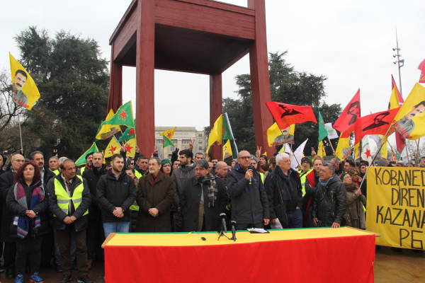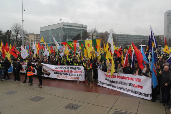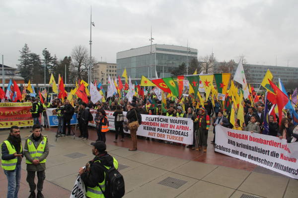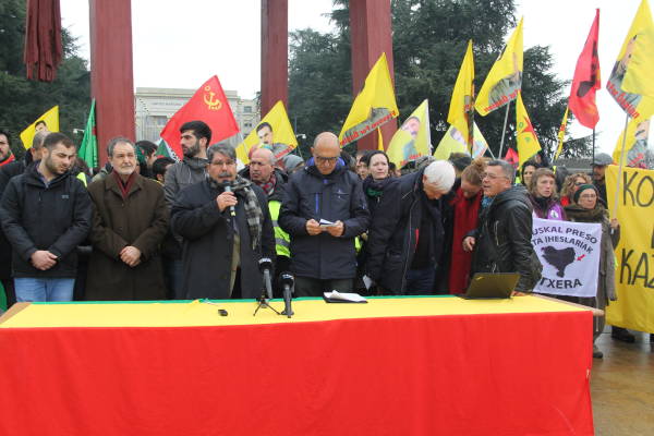 بعد أن كان المسير الطويل (لوزان - جنيف) قد انطلق في الثاني عشر من شهر شباط الجاري مندداً بالمؤامرة الدولية التي استهدفت قائد الشعب الكردي عبدالله أوجلان ومطالباً الأمم المتحدة بتحرك عاجل لإيقاف المجازر التي يرتكبها جيش الاحتلال التركي ومرتزقته في عفرين، تم اليوم تنظيم تجمّع حاشد أمام مبنى الأمم المتحدة في جنيف. نُظّم التجمع من قبل المنصة الأوربية للتضامن مع عفرين والمؤلفة من 82 مؤسسة ومنظمة تضم أكثر من ألف شخص بينهم 200 ناشط أممي قادمين من مختلف المدن الأوربية بالإضافة إلى صحفيين وسياسيين وأكاديميين من تركيا وسائر أجزاء كردستان.