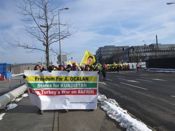 المظاهرة التي دعت إليها منصة مقاومة عفرين نددت بمحاولات احتلال عفرين من قبل جيش الاحتلال التركي وحيّت مقاومة العصر في عفرين. شارك في المظاهرة كل من الرئيسة المشتركة لحزب الخضر السويسري ريجولا ريتز وبرلمانيا الحزب الاشتراكي عن كانتون بازل مصطفى آتيجي وبريجيت هولينجر بالإضافة إلى ممثلين عن منظمات سويسرية وتركية وكردستانية.