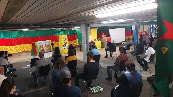 واستذكر الكردستانيون وأصدقائهم، المقاتل في قوات المسلحة للفقراء والمضطهدين/ حزب الشيوعي الماركسي اللينيني MLKP / FESK والمناضل في حركة الثورة المتحدة للشعوبHBDH في منطقة دريا رش، "سنان غونش" الذي استشهد جراء هجمات جيش الاحتلال التركي في منطقة كاخزمان الواقعة في منطقة قرس، في مركز ثقافة الموسيقى بمدينة براونشفايغ الألماني.
