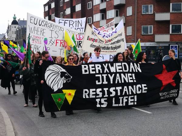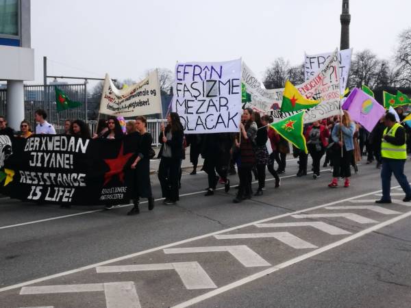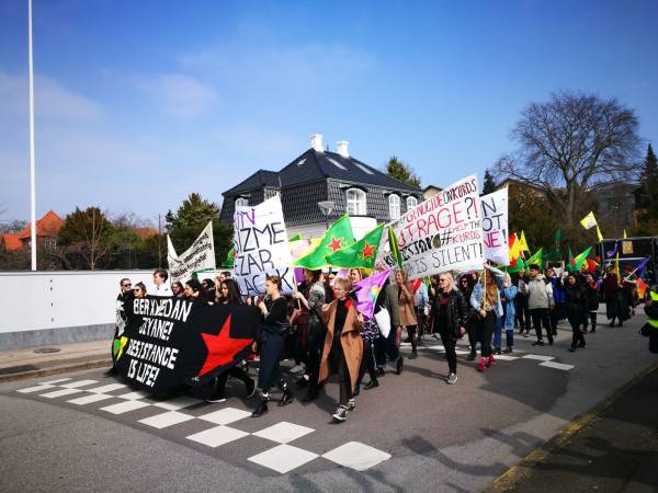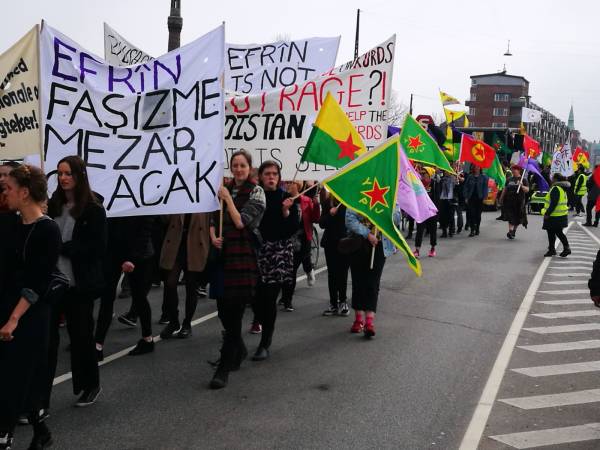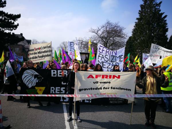 تحت شعار "فلنساند ثورة المرأة الكردية!"، خرجت مظاهرة في العاصمة الدانماركية كوبنهاغن للتنديد بالاحتلال التركي لعفرين وبالعزلة الشديدة المفروضة على أوجلان. بدأت المظاهرة من محطة (Savanemøllen) وتابعت حتى السفارة التركية، حيث حمل المشاركون لافتات كُتب عليها "عاشت المقاومة!" ونددوا بالاحتلال التركي لعفرين وبالعزلة الشديدة التي تفرضها الدولة التركية على القائد أوجلان.