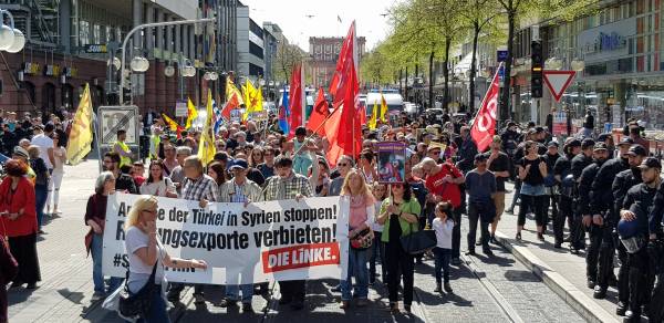 تحدّث خلال الفعالية آلتون بيسكوف قائلاً: ""المواطنون هنا يعيشون حياة هادئة بالرغم من المجازر التي ارتكبها جيش الاحتلال التركي بحق أطفال ونساء وشيوخ عفرين، وبالطبع فالمواطنون هنا يعرفون نفاق الدولة الألمانية".