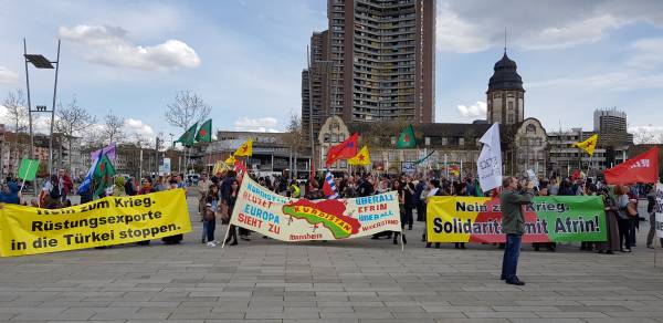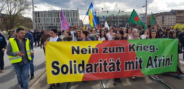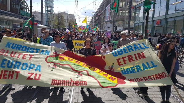 وفي مدينة مانهايم الألمانية، نظّم الكردستانيون وأصدقائهم من مناصري قضية الشعب الكردي والمنظمات الشعبية الديمقراطية مظاهرة في الساعة الواحدة ظهراً. شارك في المظاهرة حوالي ألف شخص وتحوّلت عند محطة الإطفاء القديمة إلى تجمّع كبير، حيث أُلقيت خلال التجمّع كلمات باسم مركز المجتمع الديمقراطي لكرد ألمانيا ومركز المجتمع الكردي الديمقراطي ومجلس بيريفان روناهي للمرأة و"منصة كفى" وعدد من الأحزاب السياسية الألمانية. أشارت الكلمات إلى أن عفرين ليست وحدها وأوضحت الأحزاب الألمانية أن الشعب الكردي ليس وحيداً مؤكدةً على توحيد الكفاح مع الشعب الكردي.