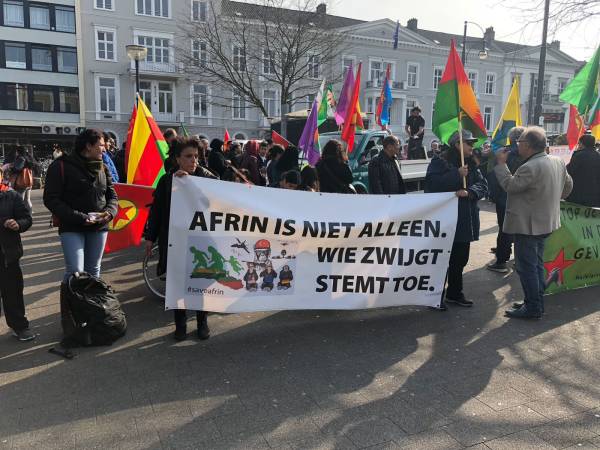 خرجت مظاهرة مركزية في مدينة آرنم الهولندية للتنديد بالاحتلال التركي لعفرين، حيث تجمّع الكردستانيون وأصدقائهم من مناصري قضية الشعب الكردي في الساعة الثالثة من بعد الظهر في مركز مدينة آرنم ورددوا شعارات من قبيل "تركيا دولة إرهابية" و"أردوغان قاتل وطاغية" و"فلتخرج تركيا الفاشية من أرض كردستان!" و"أوربا تدعم، وتركيا تقصف" لتنتهي المظاهرة بعد قراءة البيان من قبل المتحدّث باسم منصة التضامن مع عفرين.