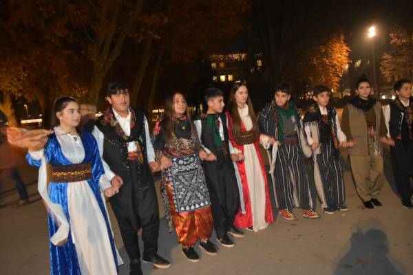 واجمعت الشبيبة الكردية في مركز المجتمع الديمقراطي حاملين لافتات تحمل العبارة التالية "من أجل انتصار حزب العمال الكردستاني فلتحيا قوات الدفاع الشعبي ووحدات المرأة الحرة –ستار"، كما حملوا صور القائد أوجلان وأعلام حزب العمال الكردستاني وبعد إنتهاء المسيرة بدأت فعالية الإحتفال في ساحة 1 أيار.