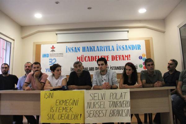 واجتمع عمال القطاع العام في مقر جمعية حقوق الإنسان في مدينة إسطنبول مطالبين بإطلاق سراح زملائهم المعتقلين مؤكدين على دعمهم لمطالب زملائهم معلقين لافتة كتب عليها "المطالبة بالعودة إلى العمل لا تعتبر جريمة حتى يتم اعتقال زملائنا".