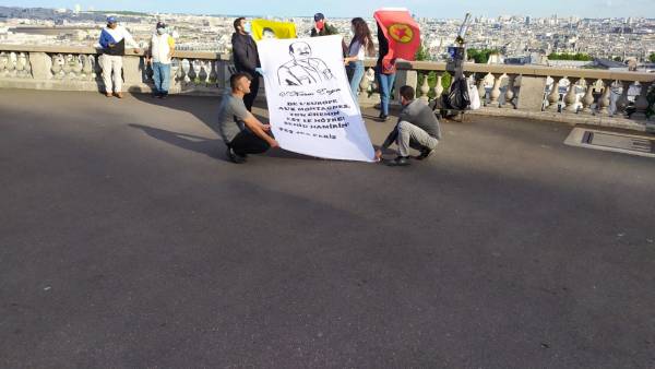 واجتمع النشطاء أمام كنيسة الساكري كور في مونمارتر "Sacré-Cœur"، وحملوا لافتة كتب عليها "من أوروبا حتى الجبل، طريقك هو طريقنا" والتي أعدت لاستذكار الشهيد قاسم أنكين.