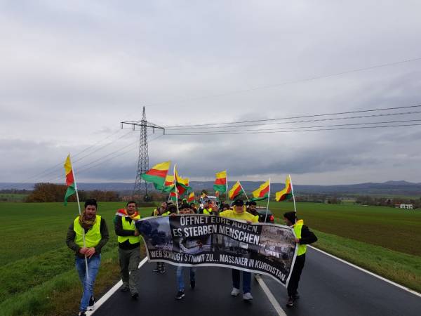 بدأت اليوم مسيرة من مدينة غوتينغن الألمانية. المسيرة التي ستستمر يومين ستصل غداً إلى مدنية كاسل. المسيرة التي شارك فيها قرابة مئة كردستاني، بدأت بشعار "الحرية لأوجلان وكردستان".