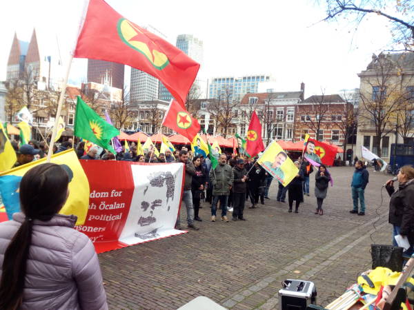 نظم الكردستانيون وأصدقائهم تجمعاً أمام البرلمان في مدنية دن هاغالهولندية. خلال المظاهرة تم ترديد الشعارات المطالبة بحرية أوجلان. كذلك تم رفع صور أوجلان ورايات حزب العمال الكردستاني ومنظومة المجتمع الديمقراطي الكردستاني وحركة المرأة الكردية في أوربا.