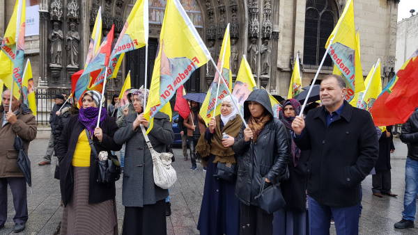 التجمع انتهى بالدعوة إلى المشاركة الفعالة في الاعتصام المستمر في فرانكفورت وترديد الشعارات المطالبة بحرية أوجلان.