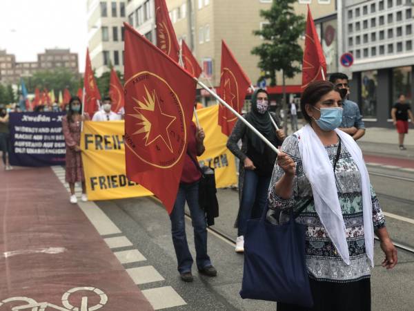 وانتهت المسيرة بترديد الشعارات التي تطالب بحرية القائد أوجلان والحد من الهجمات العنصرية.