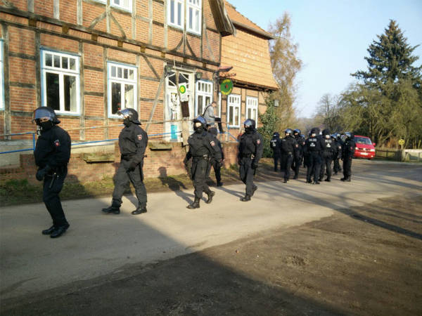 وتحركت اليوم صباحاً الشرطة الألمانية بأعداد كبيرة تقدر بالمئات لمداهمة المبنى وحققوا في هويات جميع الموجودين بما فيهم الأطفال كما وسجلوا أرقام لوحات السيارات.