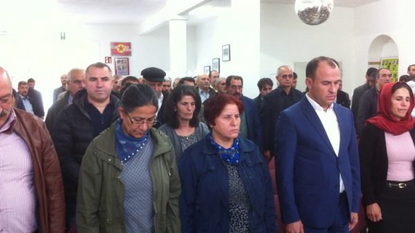 وعقدت المراسم في صالة مركز المجتمع الديمقراطي الكردي بالوقوف دقيقة صمت على أرواح الشهداء.