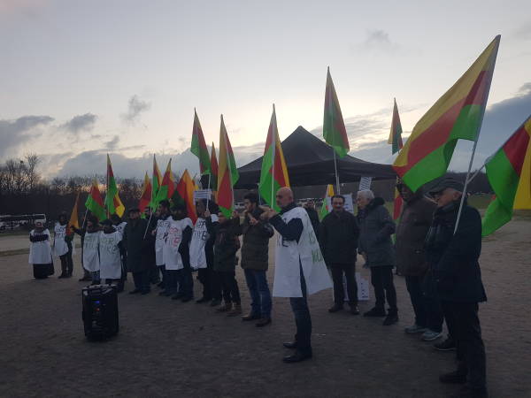 كما تم توزيع منشورات بالألمانية والإنكليزية وترديد شعارات تمجد القائد عبدالله أوجلان وتشكر الدعم والمساندة الأممية له، وتطالب برفع العزلة الشديدة المفروضة على القائد أوجلان في إيمرالي.