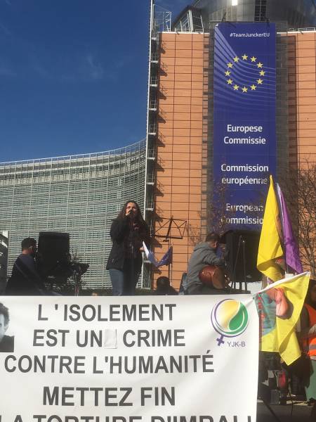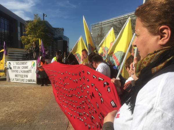 تجمّع النشطاء بناء على دعوة من حركة المرأة الكردية في أوربا ونددوا بمرحلة المؤامرة التي استهدفت القائد أوجلان منذ التاسع من شهر تشرين الأول لعام 1998 ولغاية 1999.بدأت الفعالية في الساعة الواحدة ظهراً، حيث حمل النشطاء المشاركون لافتات كُتب عليها "الحرية لأوجلان" و"على اللجنة الدولة لمناهضة التعذيب زيارة إيمرالي" و"العزلة نوع من التعذيب". ولاقت الفعالية مساندة من قبل الآشوريين السريان واتحاد النساء الاشتراكيات (SKB) والمنظمة الدولية للدعم والمساندة (الإغاثة الدولية الحمراء).