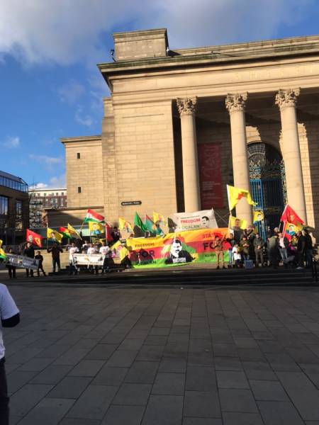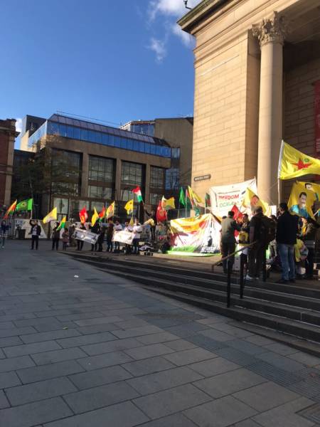 مجالس هُل وليفربول وبرمنغهام وشفيلد تجمّعت في شفيلد وأظهرت دعمها ومساندتها للمقاومة التي أبداها الشعب الكردي وأصدقائه في مظاهرة دوسلدورف. خلال التجمع تم ترديد شعارات "كلنا نمثل حزب العمال الكردستاني" و "الحرية لأوجلان".