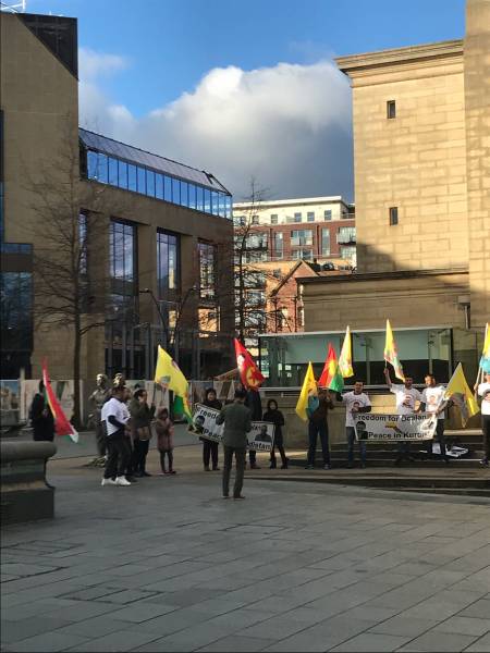 الكردستانيون الذين يعيشون في شمال بريطانيا نظّموا تجمعاً لمساندة مظاهرة دوسلدورف التي خرجت البارحة تحت شعار "الحرية لعبدالله أوجلان ولجميع المعتقلين السياسيين".
