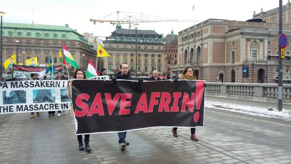 ستوكهولم: مئات الأشخاص ينددون بالعدوان التركي على عفرين