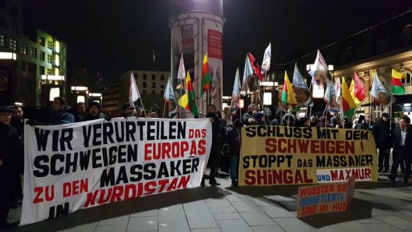 كما نزل الكردستانيون المقيمون في مدينة بريمن الألمانية إلى الساحات للتنديد بهجمات الاحتلال التركي على مخمور وشنكال. ودعا المشاركون الرأي العام العالمي والأمم المتحدة وألمانيا إلى إيقاف المجازر التي يرتكبها جيش الاحتلال التركي.