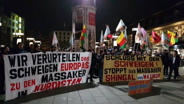 كما نظّم الكردستانيون وأصدقائهم من مناصري قضية الشعب الكردي مظاهرة في مدينة كاسل الألمانية للتنديد بهجمات جيش الاحتلال التركي على مخمور وشنكال، حيث حيا المشاركون مقاومة أهالي مخمور وشنكال.