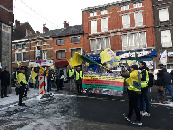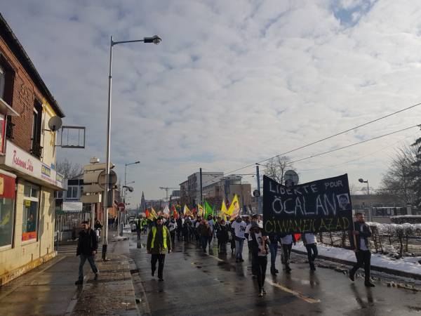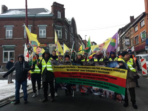 في بلجيكا أيضاً بدأت مظاهرة منددة بهجمات الاحتلال التركي على عفرين والعزلة المفروضة على إيمرالي.
