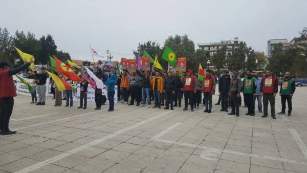النشطاء المشاركون طالبوا من خلال ترديد الشعارات واللافتات المرفوعة بحرية روجآفا وعفرين.