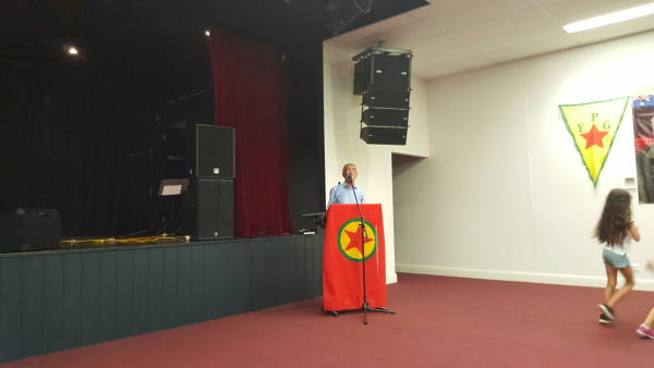 وتحدّث الرئيس المشترك لمركز المجتمع الكردي الديمقراطي في فيكتوريا "سَرتاج شاهد" الذي وجّه التحية إلى البرلمانية الكردية والرئيسة المشتركة لمؤتمر المجتمع الديمقراطي (KCD) ليلى غوفن التي تستمر في إضرابها عن الطعام احتجاجاً على العزلة الشديدة المفروضة على القائد أوجلان.