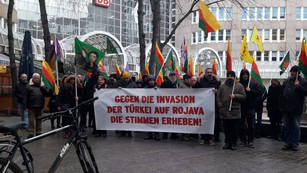 كما شهدت مدينة دوسلدورف الألمانية وقفة احتجاجية أمام القنصلية الأمريكية بالمدينة للتنديد بالقرار الأمريكي، حيث رفع المشاركون في الوقفة لافتة كُتب عليها "ارفع صوتك في وجه الاحتلال التركي لروجآفا".