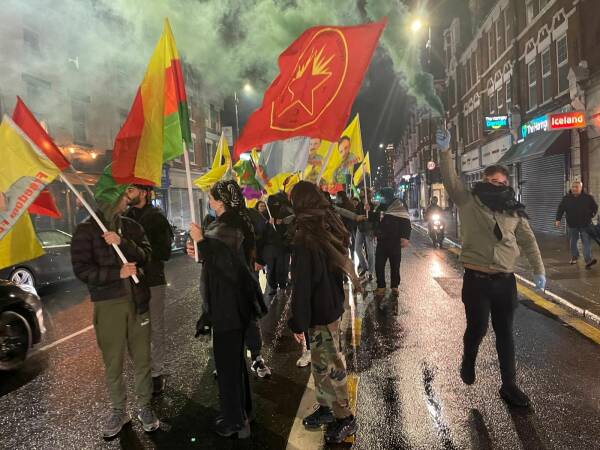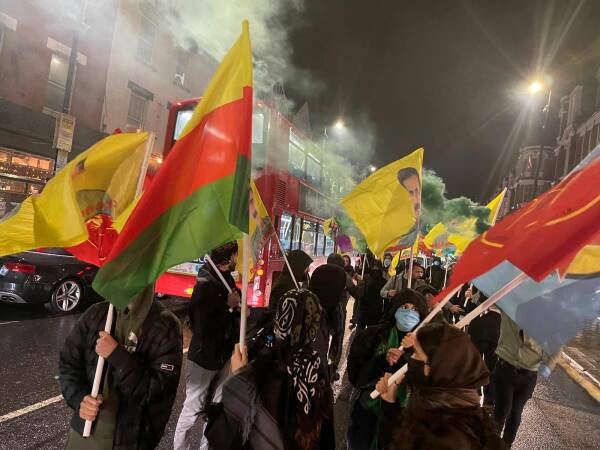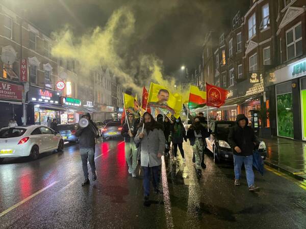 وانتهت المسيرة في منطقة هارينجي حيث يقع مركز المجتمع الكردي فيها، وصدر بيان باسم النشطاء.