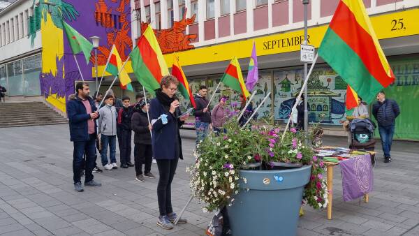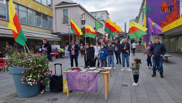 وفي الساعة 14:00، تم إقامة المنصة في ساحة فريدريشسبلاتز بمشاركة نشطاء الكرد ودوليين، وظهر اهتمام كبير بالمنصة.