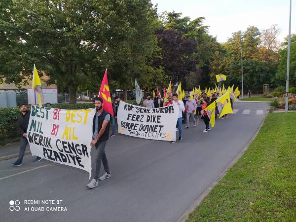 كما نظمت الشبيبة الكردستانية مسيرة راجلة أيضا في ضاحية مارينيان بالعاصمة الفرنسية باريس، حيث تجمع نشطاء حركة الشبيبة الثورية في مركز المدينة مساءً، ووقفوا دقيقة صمت على أرواح شهداء الحرية.