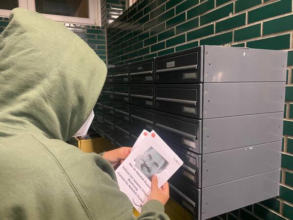 وقام النشطاء بوضع المنشورات في صناديق البريد في المنطقة حيث توجد فيها معظم المؤسسات الفاشية.