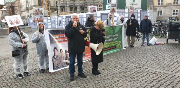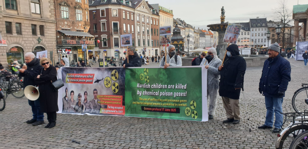 تجمع الكردستانيون في العاصمة الدانماركية كوبنهاغن بمبادرة من مجلس سفيي للمرأة أمام مقر منظمة العفو الدولية ونددوا بهجمات دولة الاحتلال التركي بالأسلحة الكيماوية ضد مناطق الدفاع المشروع.