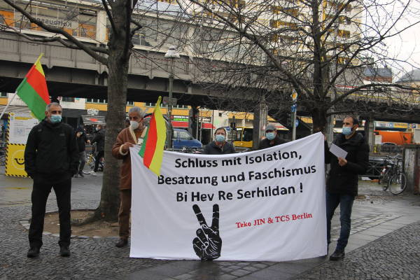 نظم الكردستانيون في العاصمة الألمانية، برلين، فعالية للتضامن مع حملة الإضراب عن الطعام التي اطلقها سجناء سياسيون في تركيا ضد العزلة المفروضة على القائد أوجلان وانتهاكات حقوق الإنسان بحق كافة السجناء السياسيين.
