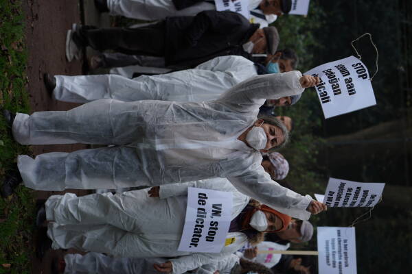 وأدلت الرئيسة المشتركة للمؤتمر المجتمعات الديمقراطية الكردستانية في أوريا (KCDK-E)، فاتوش غوكسونغور ببيان قبل المسيرة، قائلة: "سبب اجتماعنا اليوم هو صمت وظلم محكمة لاهاي في المقام الأول، وصمت جميع المؤسسات الدولية الأوروبية".