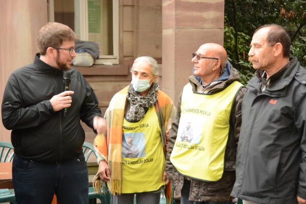 مناوبة " الحرية للقائد اوجلان" التي تقام في مدينة ستراسبورغ الفرنسية وتطالب بحرية القائد عبد الله أوجلان، تدخل اسبوعها الــ 485.